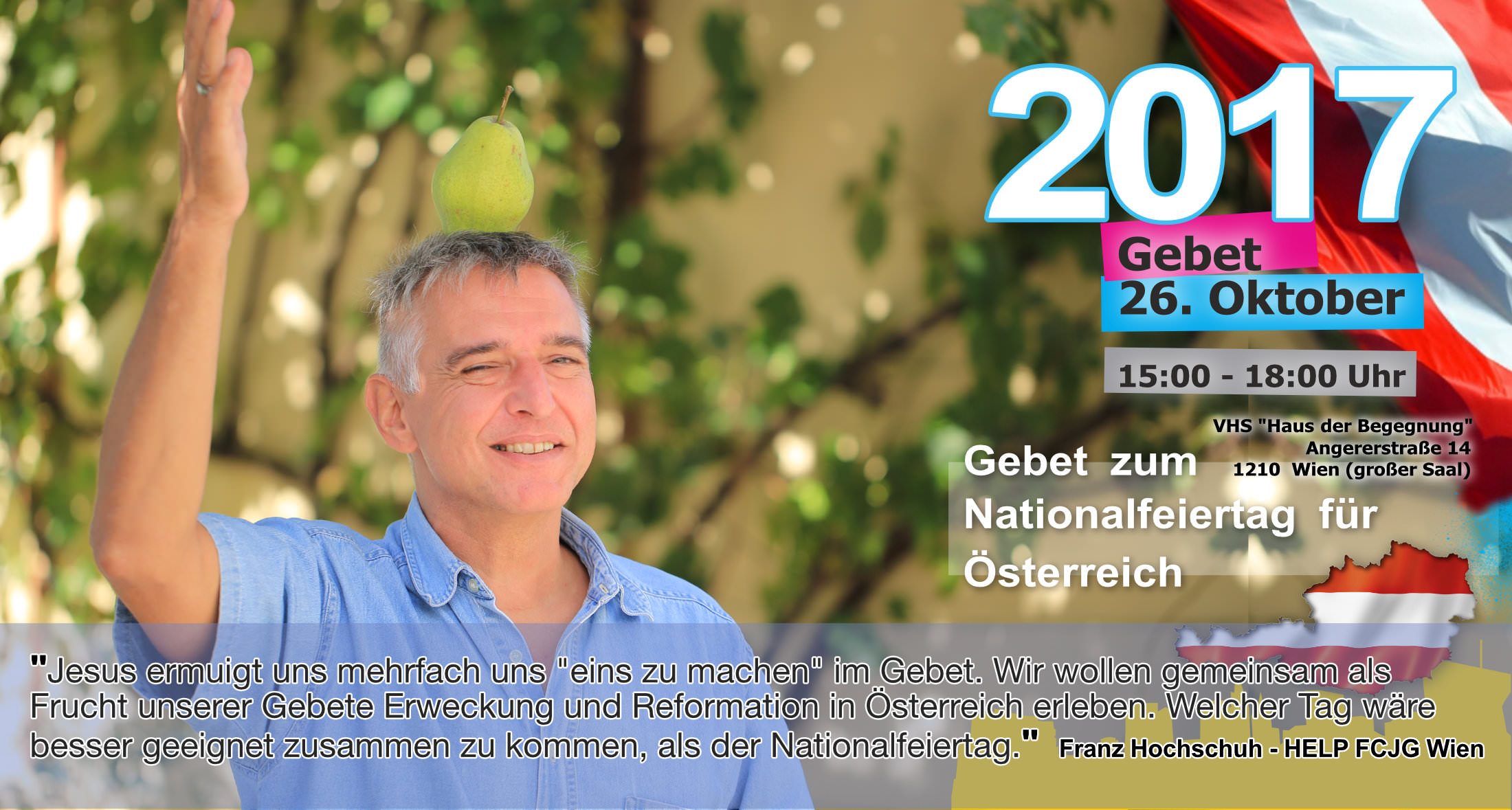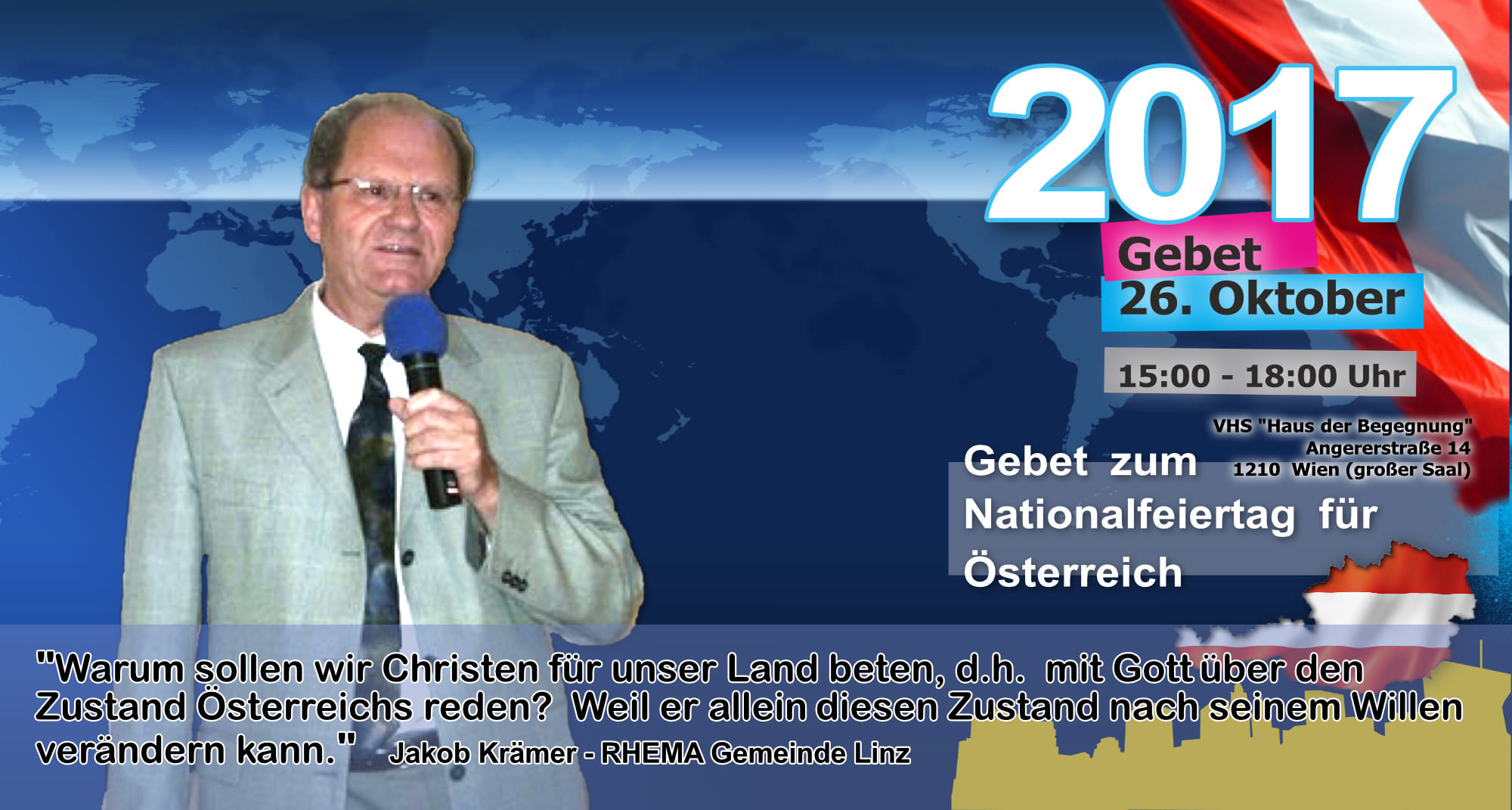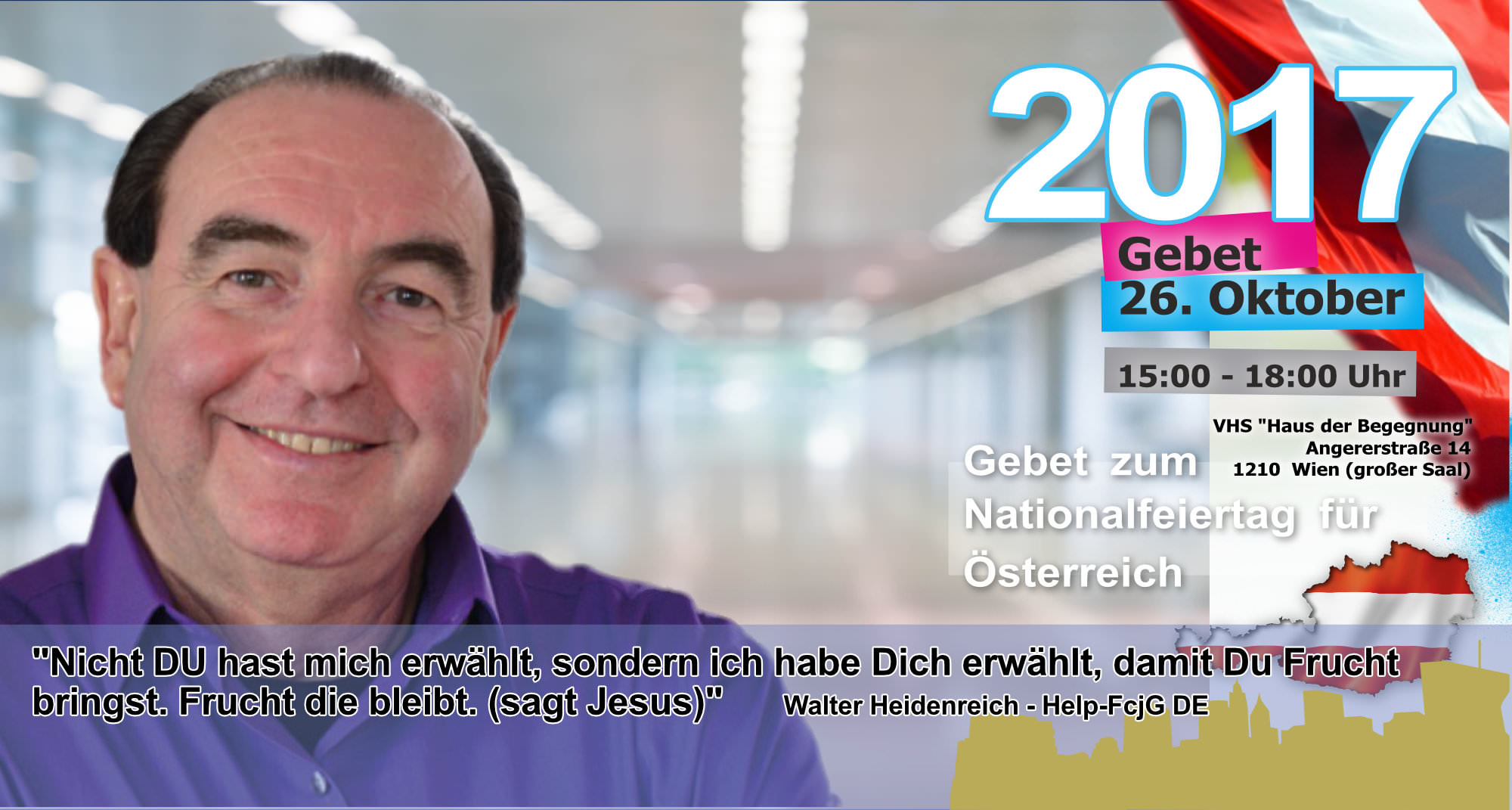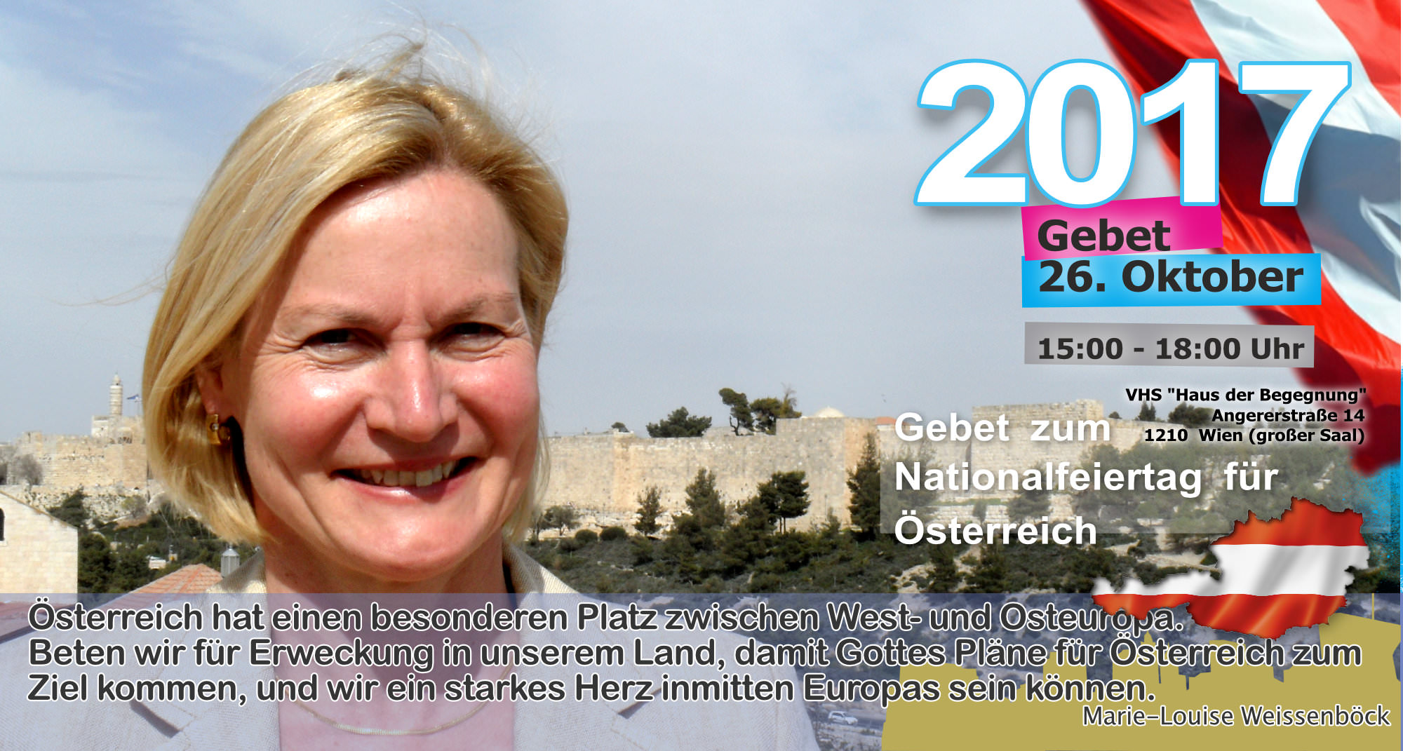 Treffpunkt: Stephansplatz - unter dem Motto "Suchet der Stadt Bestes" beten wir für "alle in Obrigkeit und Verantwortung" vor dem Rathaus, den Parteizentralen, am Heldenplatz, Parlament, Universität, aber auch gegen Antisemitismus (Judenplatz)